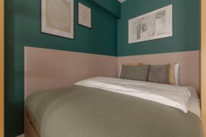 Oddzielone od części dziennej podwójne łóżko gwarantuje wysoki komfort snu, a sofa jest idealnym miejscem na wieczorne pogawędki lub seans filmowy. Jeśli będzie Was więcej może służyć również jako wygodne miejsce do spania. W pełni wyposażony aneks kuchenny gwarantuje swobodę – dzięki temu można tu przyrządzić prawdziwie domowe jedzenie lub po prostu raczyć się wyśmienitą kawą Nespresso. W łazience znajduje się przestronna kabina prysznicowa oraz dobrze oświetlone lustro. Do Twojej dyspozycji jest też szafa, żelazko i suszarka do włosów.