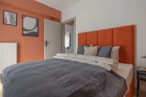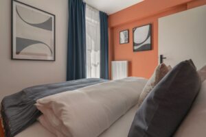 Apartament z odrębną, zamykaną sypialnią to propozycja dla oczekujących najwyższego komfortu. W środku czeka na Ciebie szerokie, podwójne łóżko gwarantujące doskonały sen. Z kolei w części dziennej znajduje się sofa która jest idealnym miejscem na wieczorne pogawędki lub seans filmowy, a jeśli będzie Was więcej może służyć również jako wygodne miejsce do spania. W pełni wyposażony aneks kuchenny gwarantuje swobodę – dzięki temu można tu przyrządzić prawdziwie domowe jedzenie lub po prostu raczyć się wyśmienitą kawą Nespresso. W łazience znajduje się przestronna kabina prysznicowa oraz dobrze oświetlone lustro. Do Twojej dyspozycji jest też szafa, żelazko i suszarka do włosów.