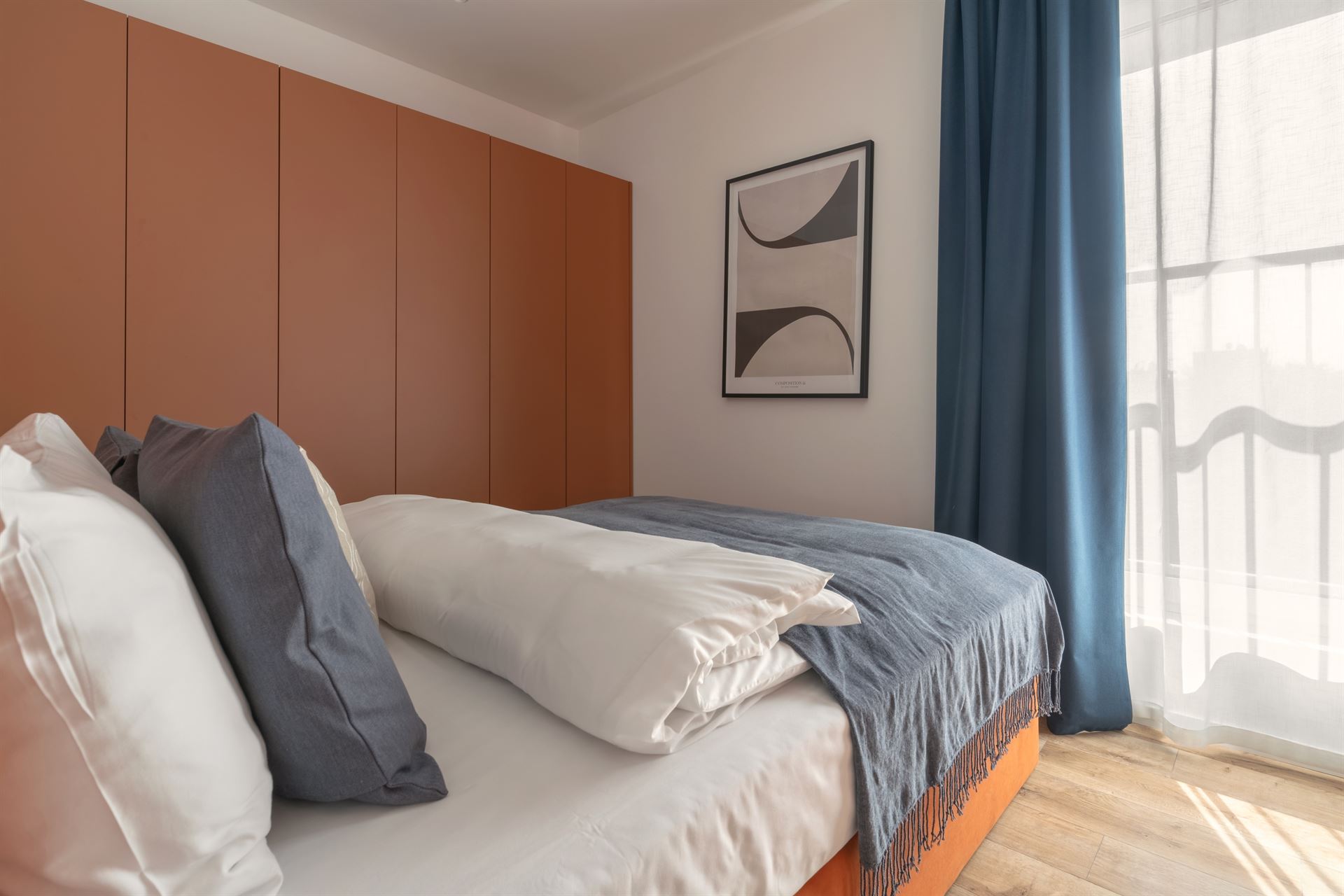 Apartament z odrębną, zamykaną sypialnią to propozycja dla oczekujących najwyższego komfortu. W środku czeka na Ciebie szerokie, podwójne łóżko gwarantujące doskonały sen. Z kolei w części dziennej znajduje się sofa która jest idealnym miejscem na wieczorne pogawędki lub seans filmowy, a jeśli będzie Was więcej może służyć również jako wygodne miejsce do spania. W pełni wyposażony aneks kuchenny gwarantuje swobodę – dzięki temu można tu przyrządzić prawdziwie domowe jedzenie lub po prostu raczyć się wyśmienitą kawą Nespresso. W łazience znajduje się przestronna kabina prysznicowa oraz dobrze oświetlone lustro. Do Twojej dyspozycji jest też szafa, żelazko i suszarka do włosów.